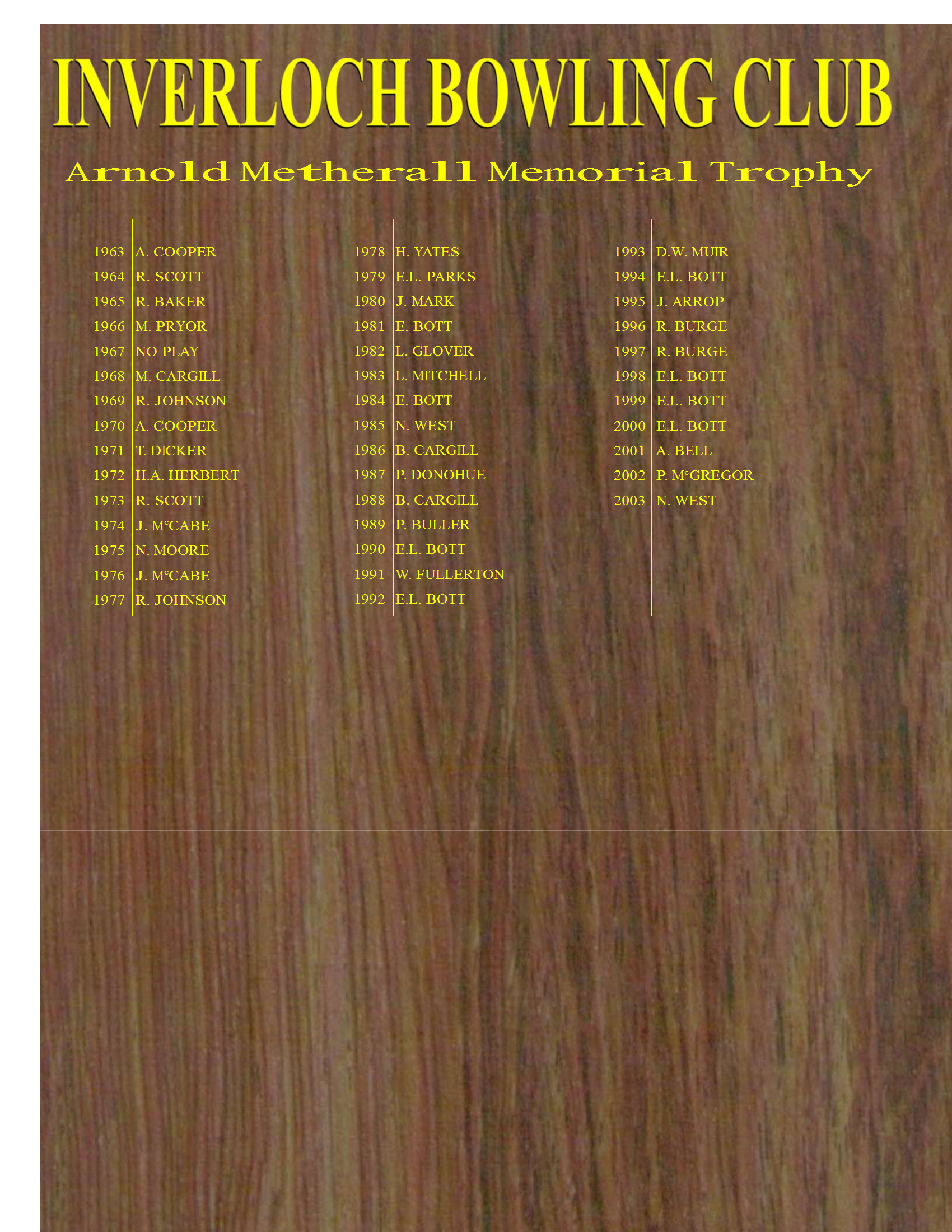 Ladies Achievements 1969-1989Men’s Achievements 1964-2000Mixed Achievements 1994-2022Arnold Metherall Memorial Trophy 1963-2003Life Members 1965-2021